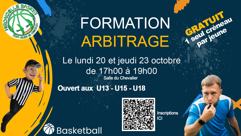 L'Hirondelle Basket organise une formation arbitrage gratuite, ouverte à tous les licenciés de la catégorie U13 à U18 pendant 2 soirs des vacances d'automne.